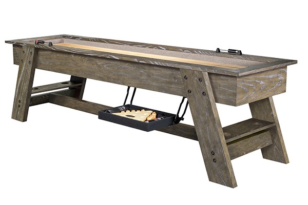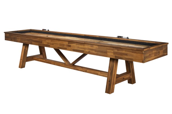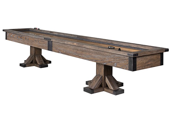 The Harpeth shuffle board features unique centered pedestal legs that are sure to get noticed.