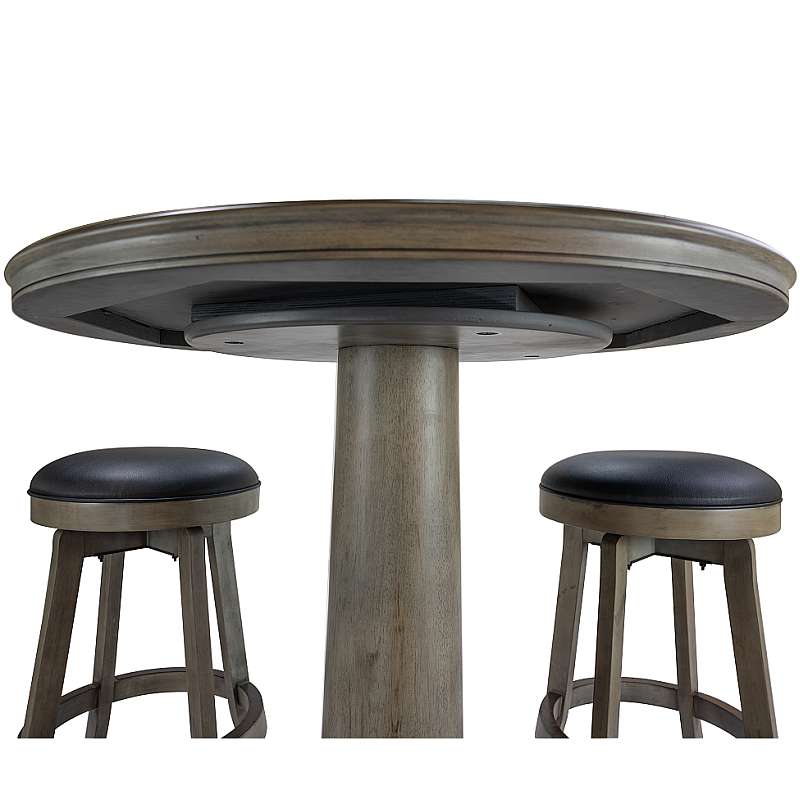 This truly unique modern designed pub table paired with some matching bar stools brings a comfy spot for a glass of wine and snacks to any entertainment room. The rounded design makes this a perfect match with any of our other Collins Series items. At 36? round the table offers plenty of space for entertaining or a board game.