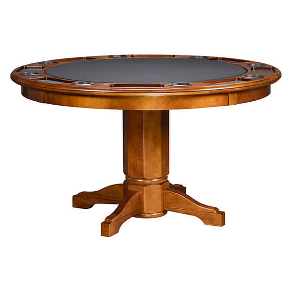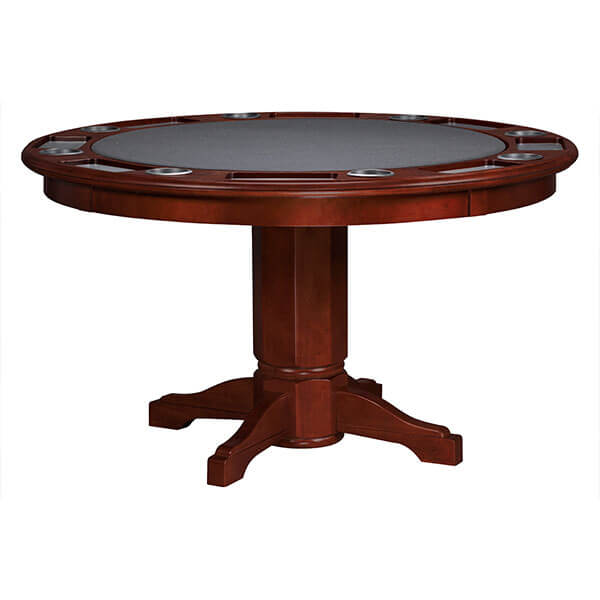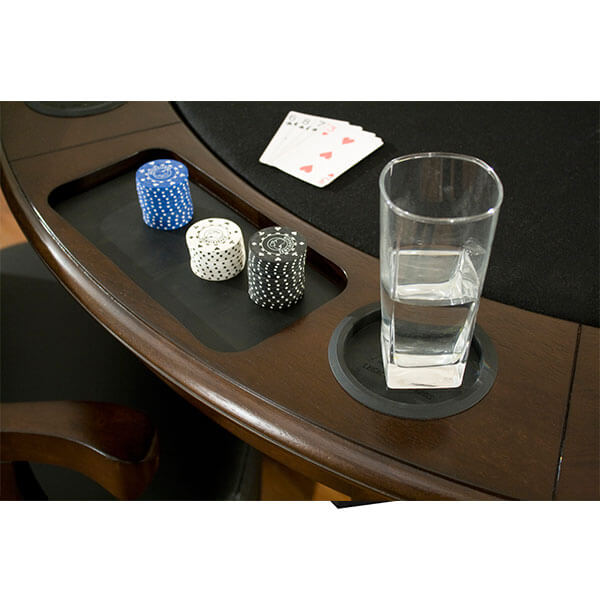 Revive the fun of friendly competition with game night at your house. This 54″ round table features generous drink holders and chip trays with removable rubber inserts to protect from spills. Flipping the game surface over reveals a beautiful dining top.